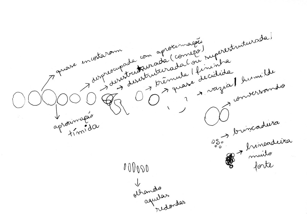 Notas-desenhos em folhas de caderno (91 folhas), instaladas e montadas em grupos variáveis, com legendas e sinalizações (tipologias)
